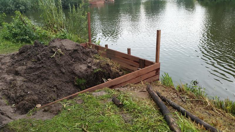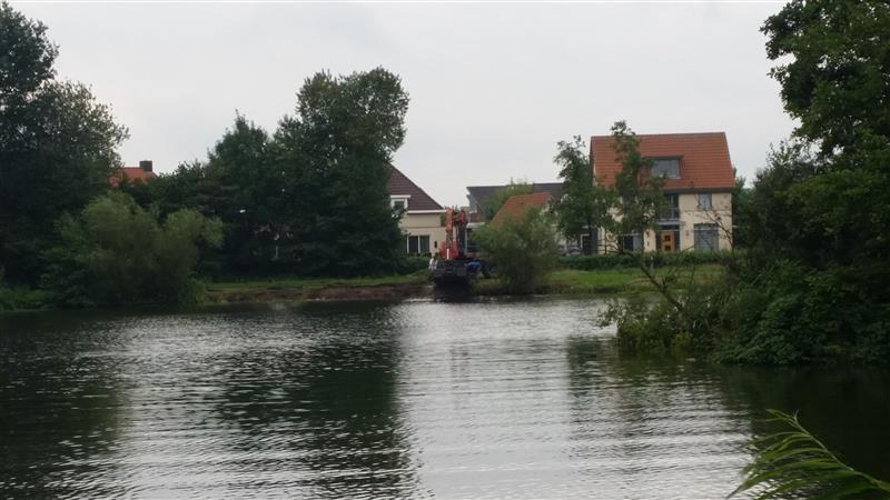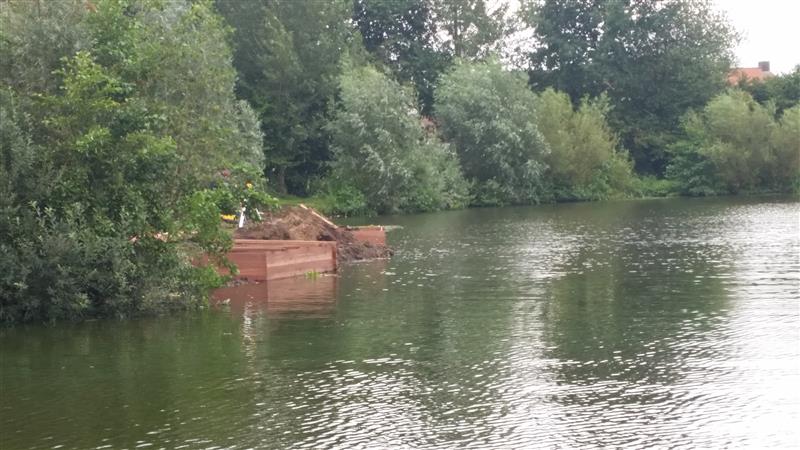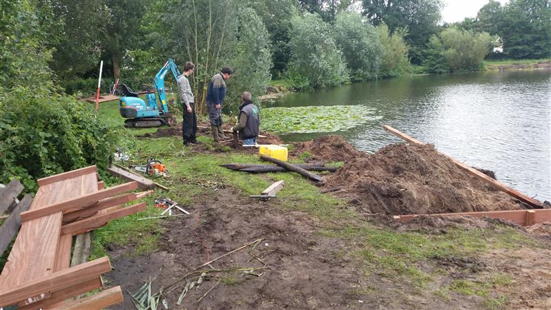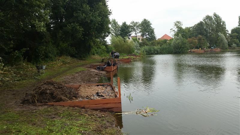 De werkzaamheden rondom de nieuwe vissteigers en natuurvriendelijke oevers Augustus 2014.